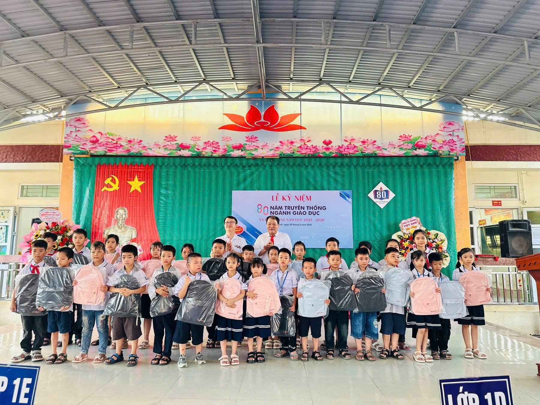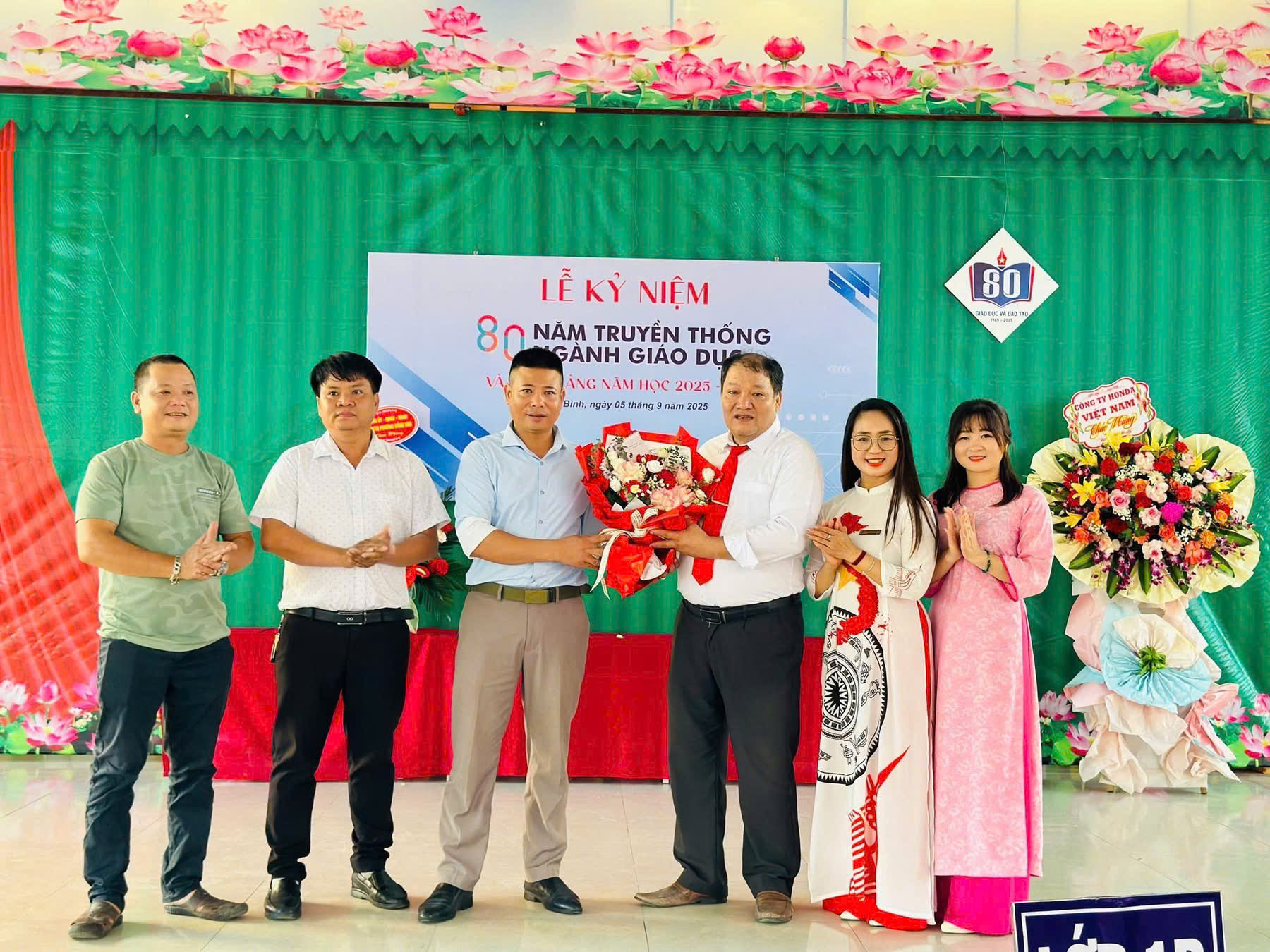 Cùng với lẵng hoa tươi thắm là 30 suất học bổng mà công ty Honda Việt Nam đã mang đến trao tặng cho 30 em HS bao gồm những HS có hoàn cảnh khó khăn và những HS đạt thành tích cao trong học tập.